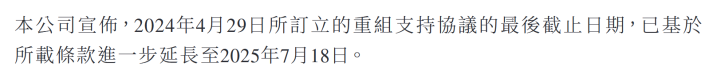 尽管花样年控股此后对债务展期年限及利率变动、筹集新资金的方案等进行了更新,若该重组计划得以成功实施,预计将削减近一半的境外负债总额。但仍未获得重组通过所需债权人的同意,境外债务重组支持协议截止日期也一延再延。根据7月14日花样年控股发布的有关境外债务重组更新显示,重组支持协议的最后截止日期进一步延长至2025年7月18日。